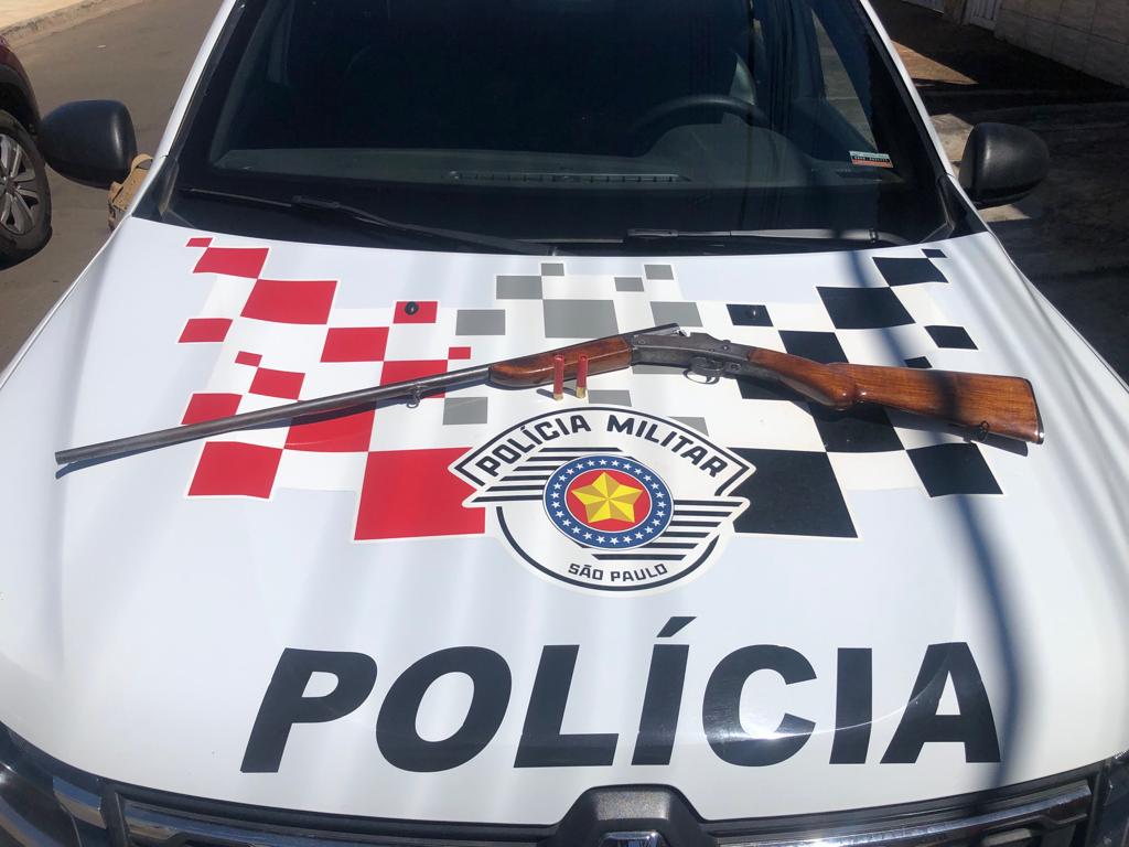 Os PMs pediram ao comerciante para averiguarem o interior da casa e ele franqueou a entrada dos mesmos. No interior do imóvel, escondida em um guarda-roupas, os policiais militares acharam uma espingarda calibre 36 com dois cartuchos intactos.