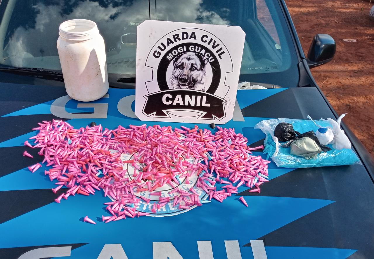 Após busca apurada, a GCM de quatro patas localizou 140 gramas em pó a granel e 663 pinos contendo cocaína, bem como invólucros plásticos com pó idêntico ao localizado; em incursão efetuada mais adentro da área foi localizado um pé de planta viva com característica da Cannabis (maconha).