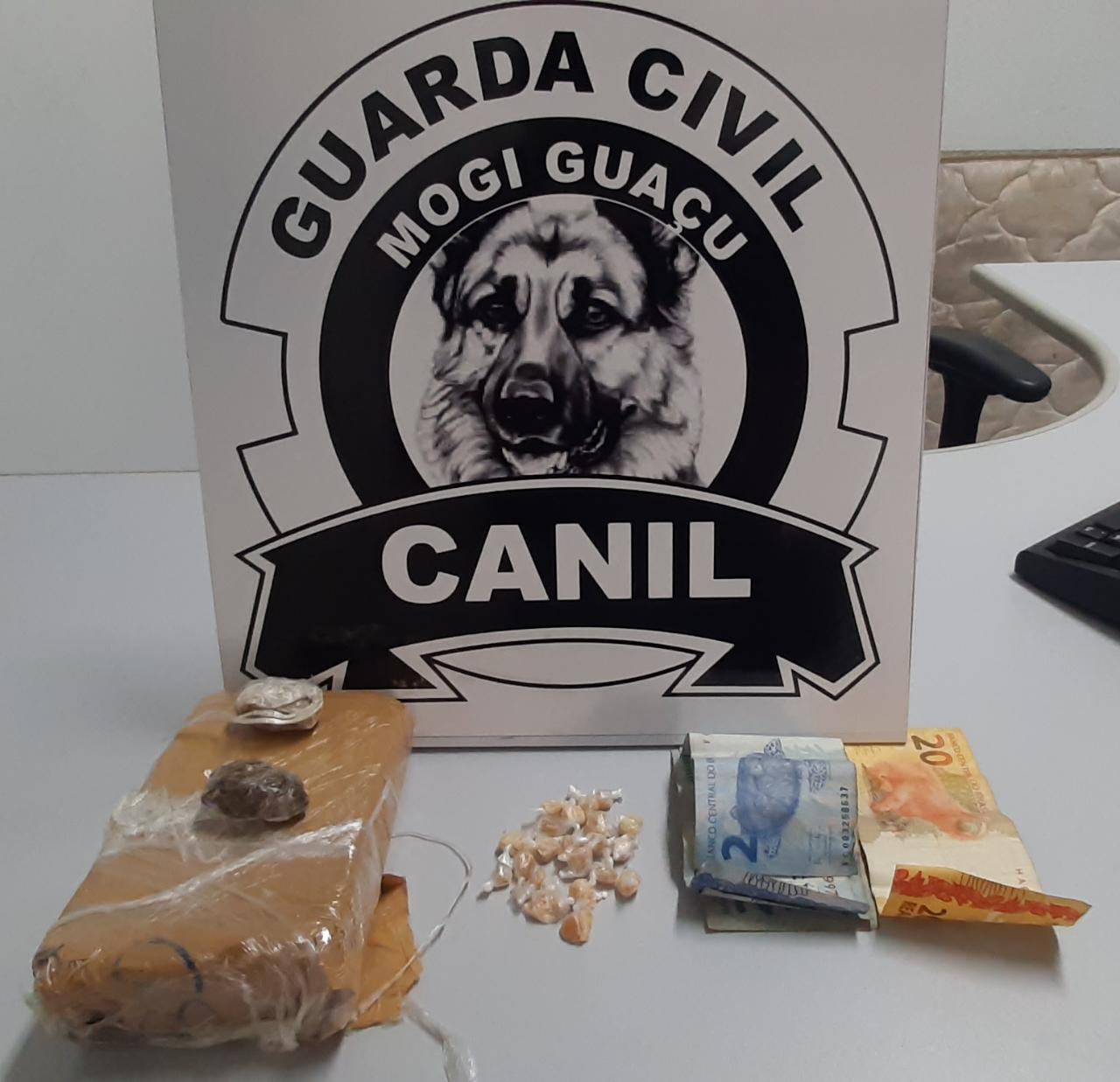 Abordado, o individuo portava duas porções de maconha no bolso e mostrou ainda onde havia mais três pedras de crack. A cadela de faro Babi, foi empregada e localizou meio tijolo de maconha, dentro do porta luvas de um fusca que estava no terreno da residência, Babi ainda localizou mais algumas porções de crack.