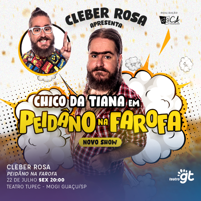 Com mais de 1 bilhão de visualizações e 4 milhões de seguidores, o humorista mineiro, Cleber Rosa, leva seu novo show de humor, de grande sucesso, por todo o Brasil. Em pouco mais de uma hora, sua comédia stand up aborda situações comuns da vida de um homem simples; causos do seu personagem mais querido e popular, Chico da Tiana, e o quadro Reclamação do Dia, divertem plateias por onde passa.