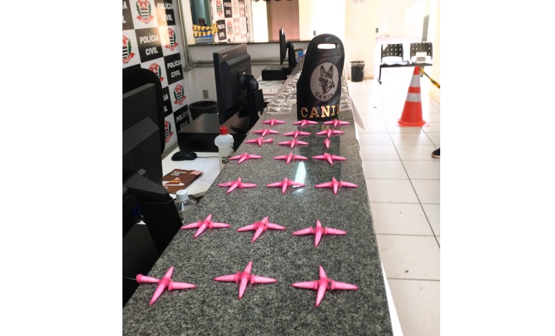 Por se tratar de local de venda e comércio abundante de entorpecentes foi empregada a cadela Babi, a qual apontou em dois locais distintos 82 pinos de cocaína e 69 porções de maconha.