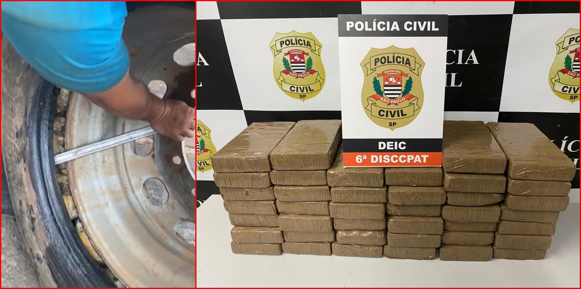 Policiais civis da 6ª Delegacia de Polícia de Investigações sobre Facções Criminosas e Lavagem de Dinheiro (Deic) prenderam dois traficantes com 40 tijolos de cocaína, em Mogi Mirim, neste domingo (14).