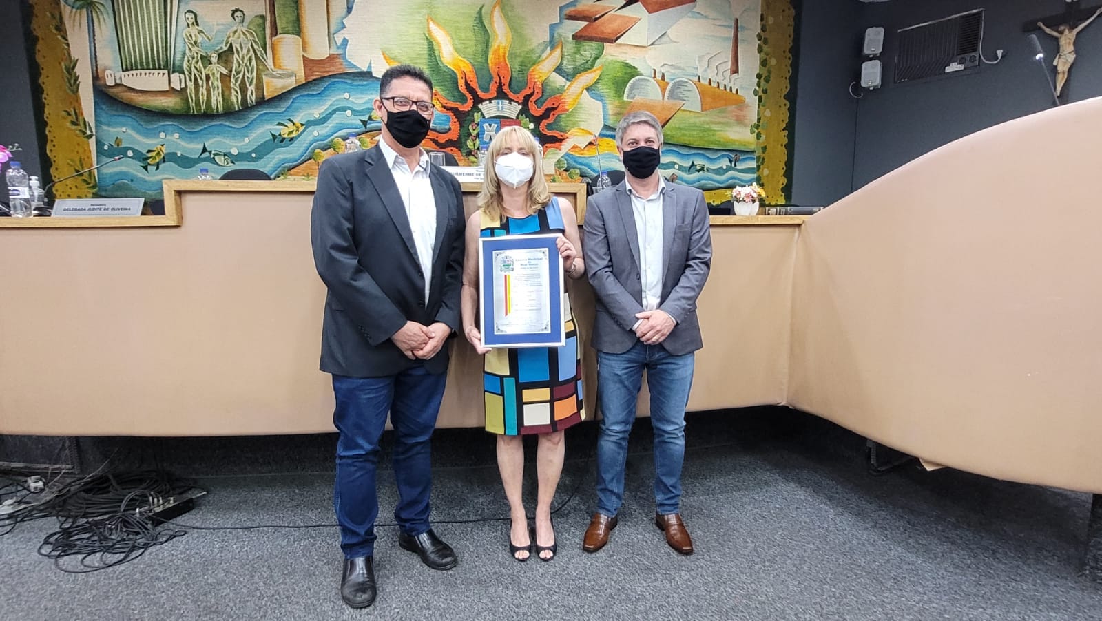 A solenidade foi presidida pelo presidente da Câmara, Guilherme de Sousa Campos, o Guilherme da Farmácia (Cidadania), e secretariada pela autora do projeto; compuseram a mesa diretora também o prefeito, Rodrigo Falsetti (Cidadania), o vice-prefeito, Major Marcos Tuckumantel (PSDB), o Comandante da 1ªCia da Polícia Militar, Capitão Renato Rodrigues Buzo, o secretário de Segurança Pública, Paulo Henrique da Silva Gomes, o diretor geral do Cegep, João Pansani, o secretario de Turismo, Luiz Cláudio Soares de Souza, o secretário Relações Institucionais e Desenvolvimento Econômico, Alair Alves Júnior, o presidente do Conseg, Vicente Arthur Polito e vereadores.
