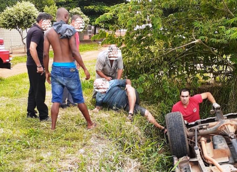 Segundo apurado, o aposentado estava pescando no local e ao sair, devido ao mato alto, não viu a valeta e acabou caindo dentro da lagoa com o seu Mitsubishi TR4, ficando com o veículo capotado.