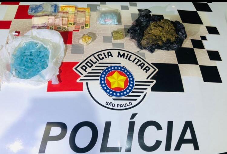 Os PMs Sargento Charles, Soldado Alan e Soldado F. Pozzer foram apurar uma denúncia de que estaria sendo comercializado drogas em uma residência que fica na rua Maria de Lourdes Alvarenga.