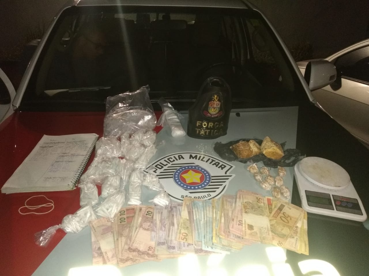 De imediato, um menor de idade atendeu e confessou que havia mais drogas na casa. Os PMs então entraram e encontraram várias pedras brutas de crack que pesou cerca de 0,450 Kg, 01 balança de precisão, 567 pinos de cocaína e R$ 1.488,00 em dinheiro em notas diversas, que o menor infrator confessou ser de sua propriedade e ainda que havia alugado a casa a cerca de um mês por R$ 600,00 mensais.