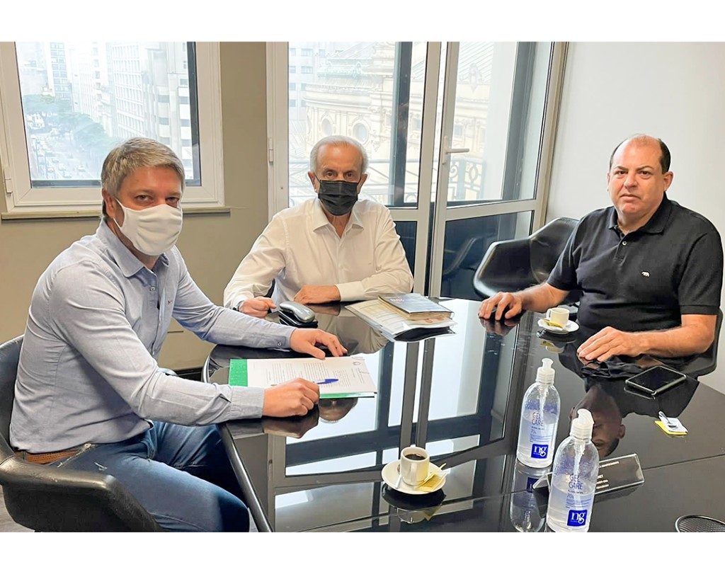 Durante assinatura do convênio, o prefeito esteve acompanhado pelo chefe de Gabinete, Ruben Coimbra Novaes, e pelo secretário de Governo, Ivan Pinheiro.