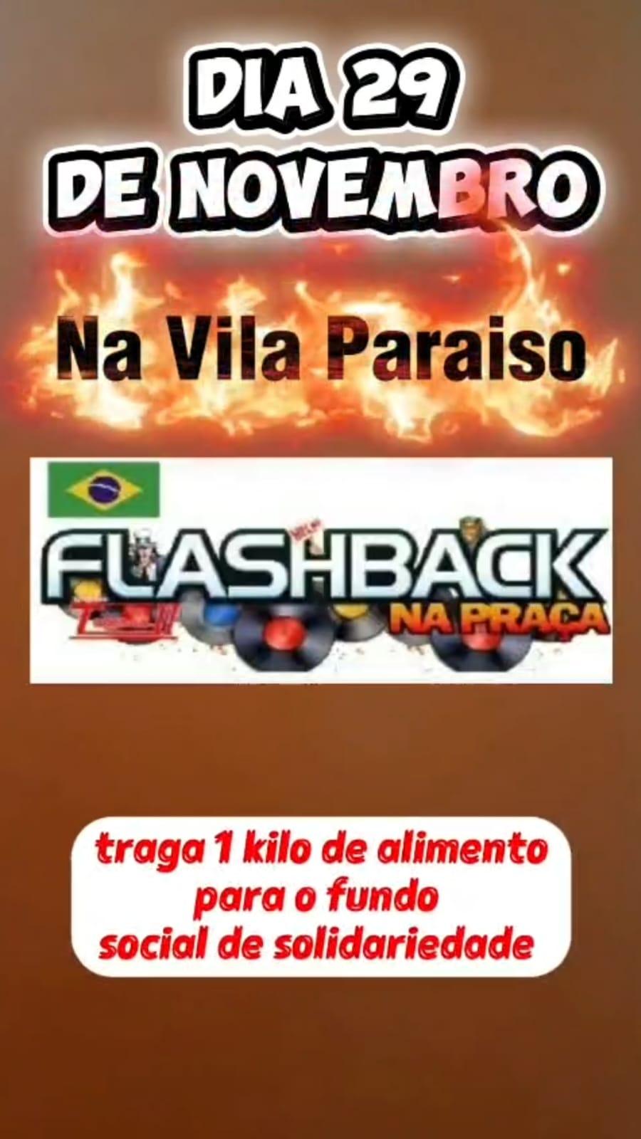 Edmundo, da Vila Paraíso, convida todos a comparecerem com suas famílias para viver um momento de diversão e comunidade. O Flashback na Praça é a pedida ideal para quem busca reviver antiguidades musicais e contribuir para uma boa causa.