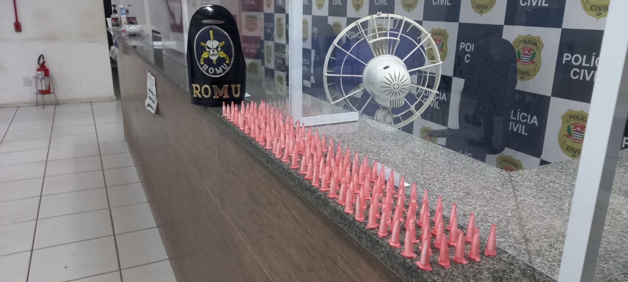 O adolescente de15 anos foi abordado e na revista pessoal, em suas mãos, foram localizados 20 pinos de cocaína. No bolso da bermuda foram apreendidos mais 20 pinos da mesma droga.