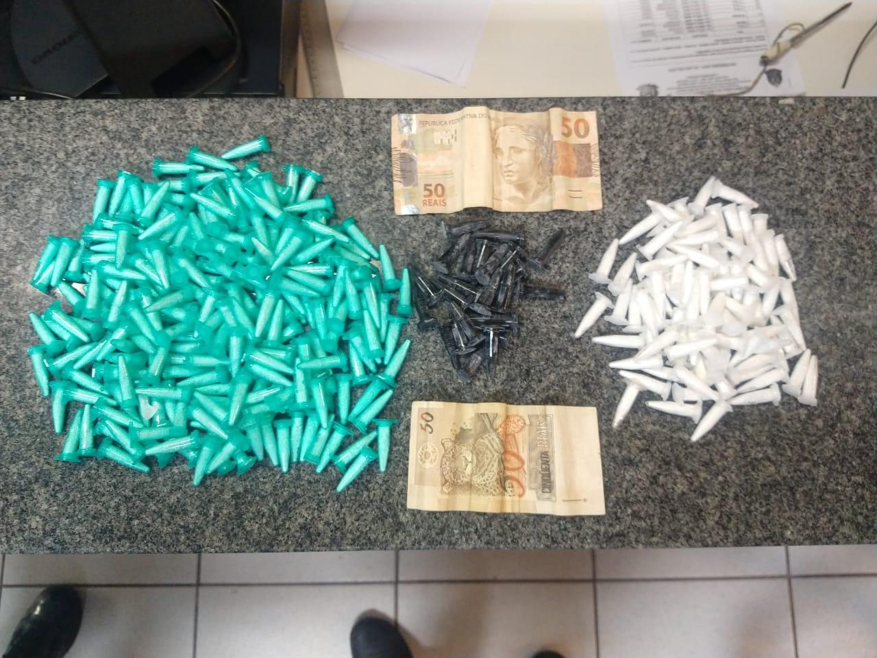 Havia com o jovem traficante a quantia de 330 pinos de cocaína e R$ 100 em dinheiro, ele confessou o crime e foi encaminhado para a Central de Polícia Judiciária e se encontra apreendido à disposição da Justiça.