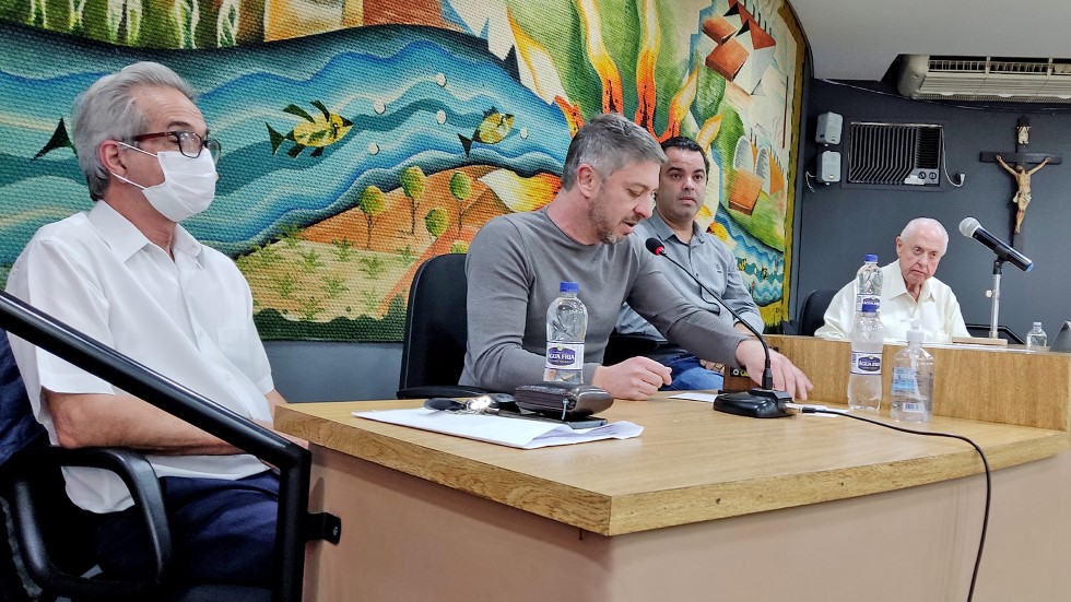 Uma reunião realizada na Câmara de Mogi Guaçu nesta segunda-feira, 23 de maio, marcou a apresentação do projeto que visa a retirada das macrófitas do lago da PCH (Pequena Central Hidrelétrica) administrada pela AES Brasil. O presidente do Legislativo, Guilherme da Farmácia compôs a mesa ao lado do prefeito de Mogi Guaçu, Rodrigo Falsetti, do prefeito de Mogi Mirim, Paulo Silva e do deputado estadual Barros Munhoz. Empresários, vereadores e secretários dos municípios de Mogi Guaçu, Mogi Mirim e Itapira participaram.