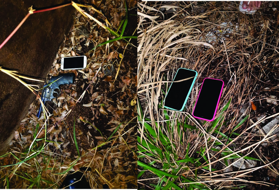 Quando passavam pela rua Oswaldo de Carvalho, no Jardim Rosa Cruz, os GCMs localizaram o Onix escondido em um matagal de um terreno baldio. O cão de faro ainda encontrou três aparelhos de celulares, sendo dois iPhones 11 e um Samsung, além de um revólver Taurus, calibre 38, que estavam jogados em meio à vegetação.