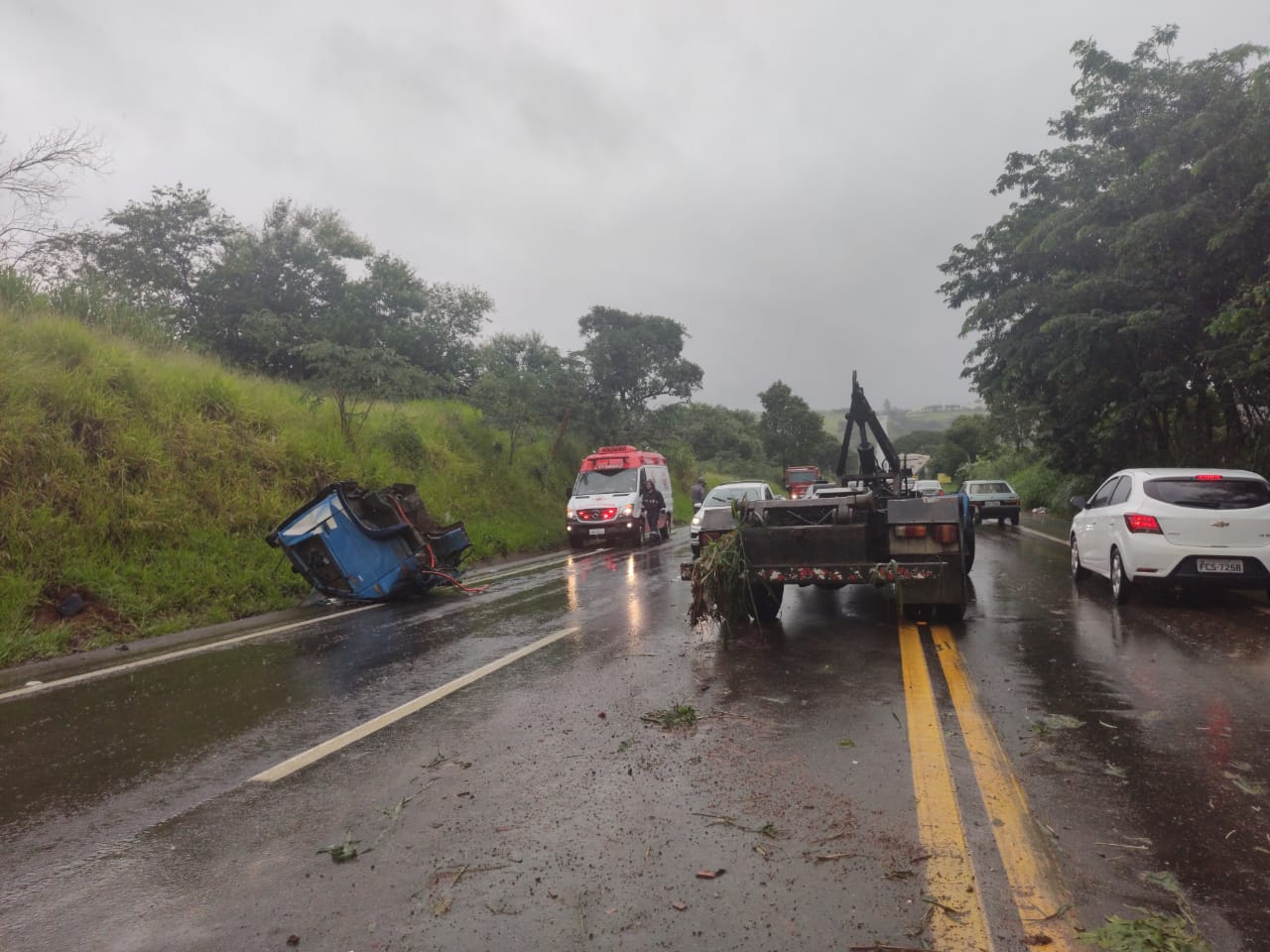 O acidente ocorreu em um trecho de descida. Segundo informações da Polícia Militar Rodoviária, um carro que vinha à frente do caminhão freou bruscamente. O motorista do caminhão perdeu o controle da direção e para evitar a colisão, saiu no acostamento e bateu violentamente no barranco.