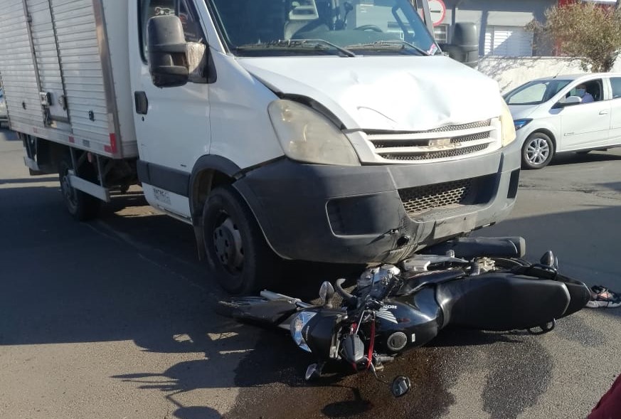Caminhão invade preferencial e acerta moto em cheio: duas mulheres ficaram feridas