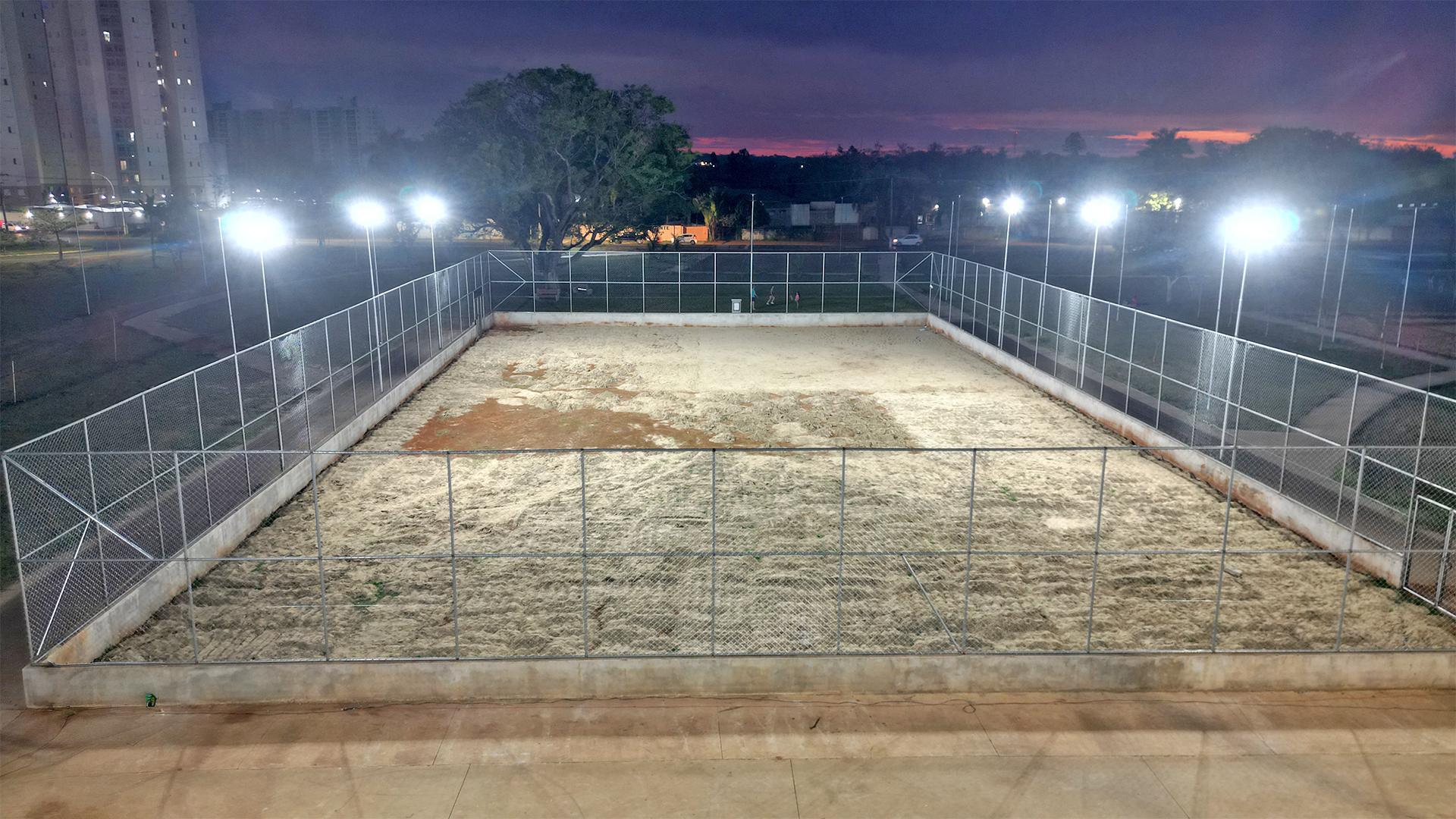 Campo do TG: Teste verifica qualidade dos refletores da nova iluminação e área começa a receber paisagismo