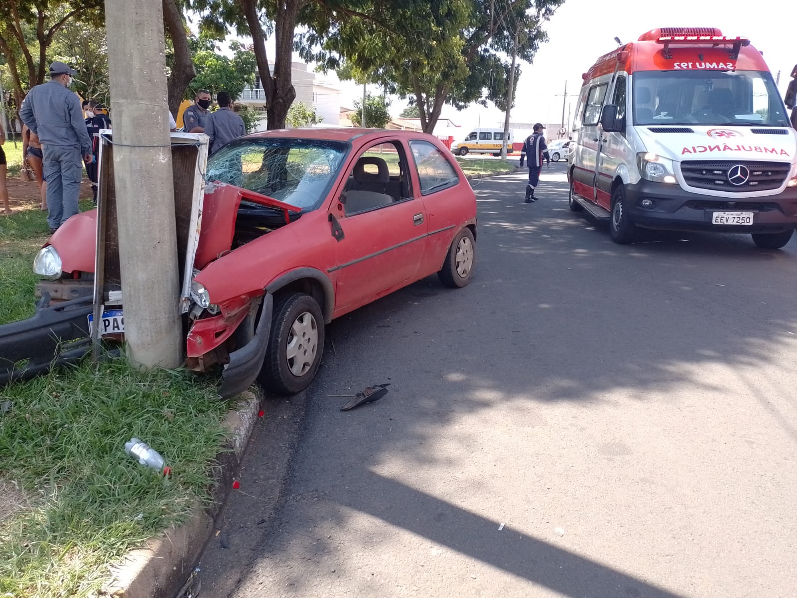 Segundo apurado, a condutora do veículo perdeu o controle na rotatória e acabou acertando o poste com violência. Com o impacto, condutora e passageira tiveram ferimentos leves e foram socorridas pelo SAMU para o Posto de Pronto Atendimento (PPA) do Jardim Novo II.