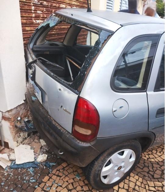Ela foi avisada por um conhecido da família e ao chegar no local, na Rua Nunes Pedrosa, Bairro do Lote, deparou com um automóvel GM Corsa sobre a calçada e com a traseira, que tem engate, comprimida contra a coluna da porta do imóvel por força da colisão em ré. O vidro traseiro se estilhaçou na batida.