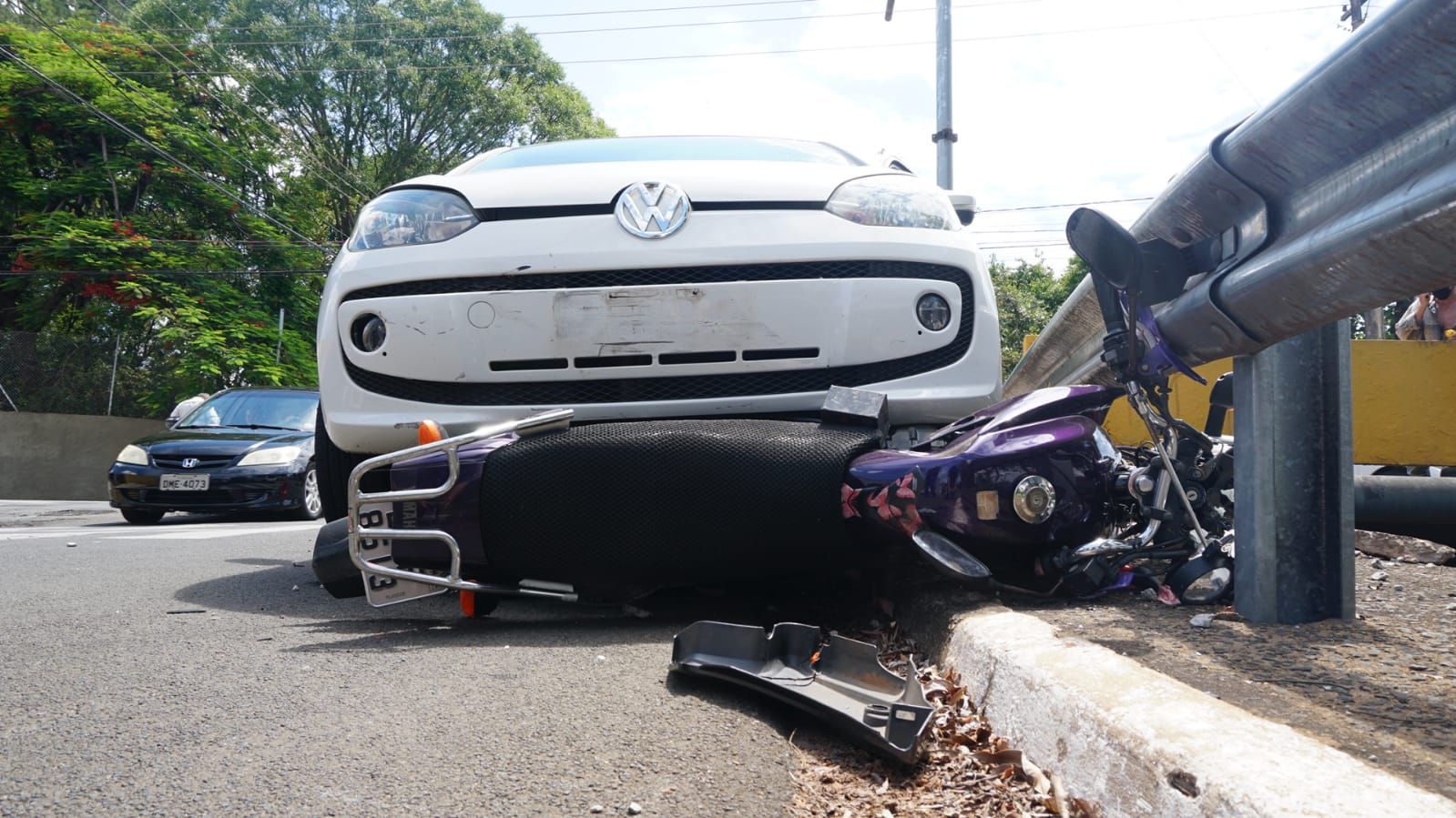 Ao se aproximar do cruzamento com a avenida Brasil, próximo a um supermercado, Maria foi atingida na lateral por um Volkswagen Up branco, também conduzido por uma mulher e que seguia sentido ao centro. Na batida, a moto acabou em baixo do veículo, prensando o veículo e a motociclista contra a a defensa metálica existente ao longo da avenida.