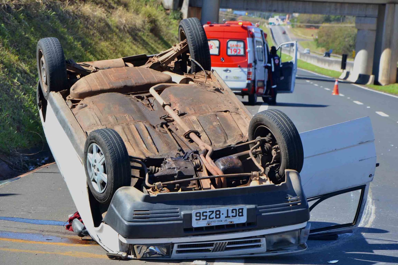Testemunhas acionaram o SAMU que rapidamente chegou ao local e prestou os primeiros socorros tanto para o condutor do veículo como para a sua companheira. Apesar de uma suspeita de fratura na clavícula do condutor, ambos foram socorridos para a Santa Casa em estado leve.