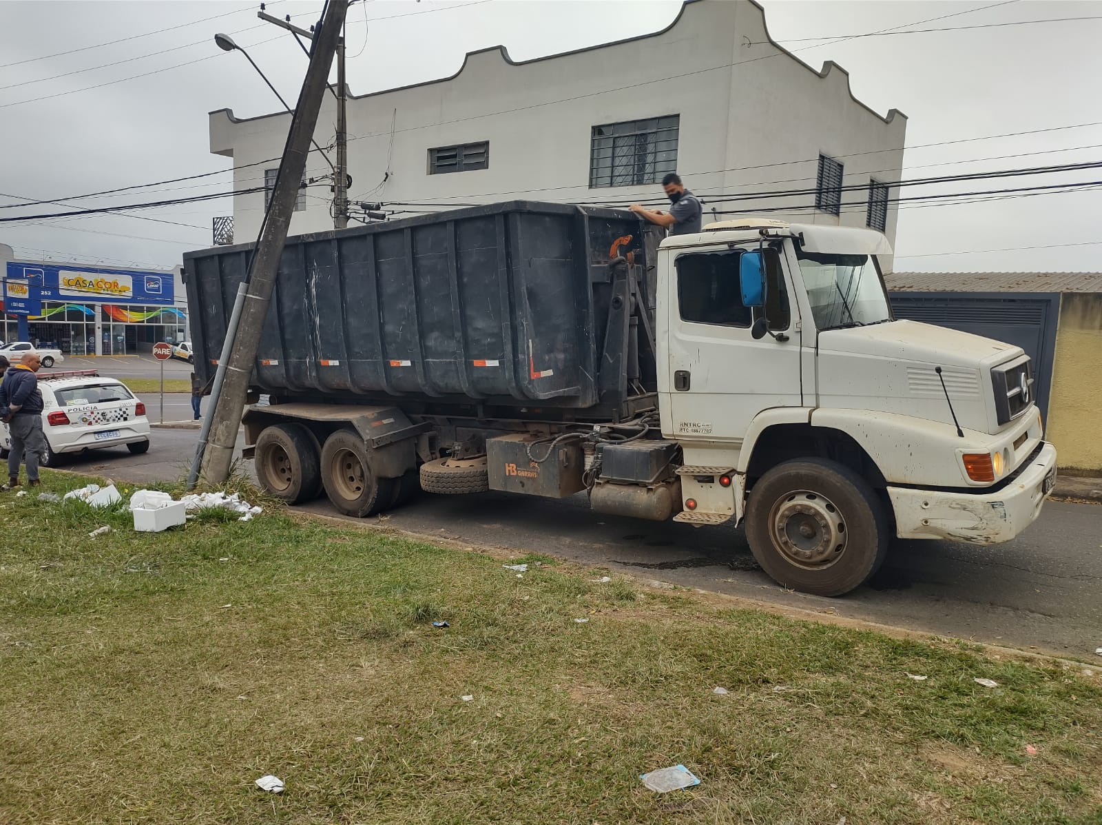 O homem estava dirigindo um caminhão com trilhos de trem furtados