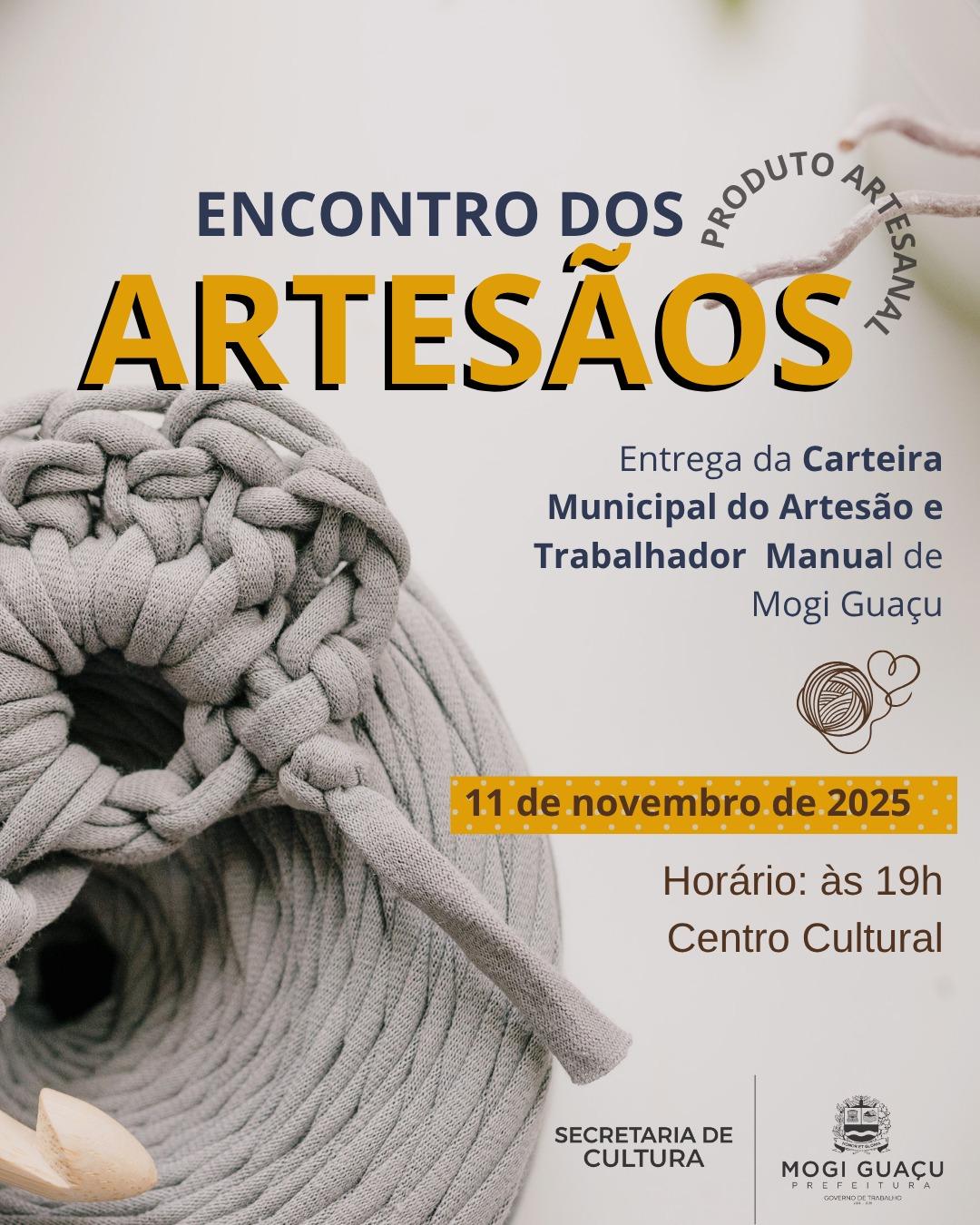 Nesta terça-feira, 11 de novembro, a partir das 19h, a Secretaria Municipal de Cultura vai promover o Encontro dos Artesãos de Mogi Guaçu. O evento, que celebra a produção artesanal local, também vai marcar a entrega das Carteiras Municipais do Artesão e Trabalhador Manual. A cerimônia será no Centro Cultural, localizado na Avenida dos Trabalhadores, 2651, no Jardim Camargo.