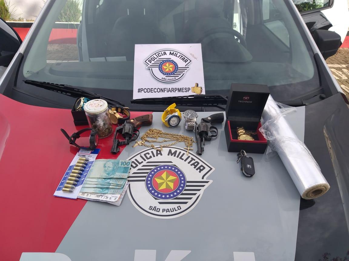 O dono do Civic, E.C.A.A. confessou que havia duas armas de fogo ilegais e que as mesmas estariam pela sua residência, onde mais tarde ambas foram localizadas, um revolver calibre 38 e um calibre 32. Foi encontrado também mais 26 gramas de maconha, objetos para embalo e fracionamento do entorpecente, balança de precisão, 6 relógios de origem desconhecida, R$ 822 em dinheiro e folhas de cheques que somavam R$ 2.173.00, além de 4 correntes de ouro.