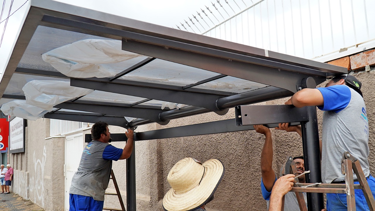 Já o supermercado Pague Menos doou mais dois novos abrigos por meio de parceria com a Administração Municipal e eles estão sendo instalados na Avenida Bandeirantes, sendo um em cada lado da via.