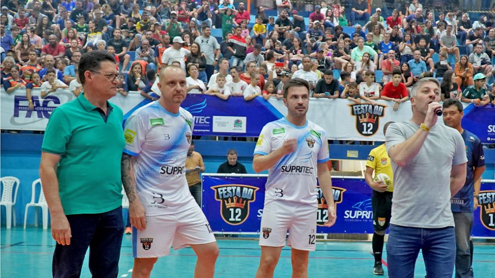 O rei do futsal Falcão participou ontem à noite, dia 18 de abril, de um jogo festivo no ginásio poliesportivo Carlos Nelson Bueno, o Furno. Com a casa cheia, o jogador fez bonito em quadra. O prefeito Rodrigo Falsetti e o vice-prefeito Major Marcos Tuckumantel participaram do evento, assim como demais autoridades.