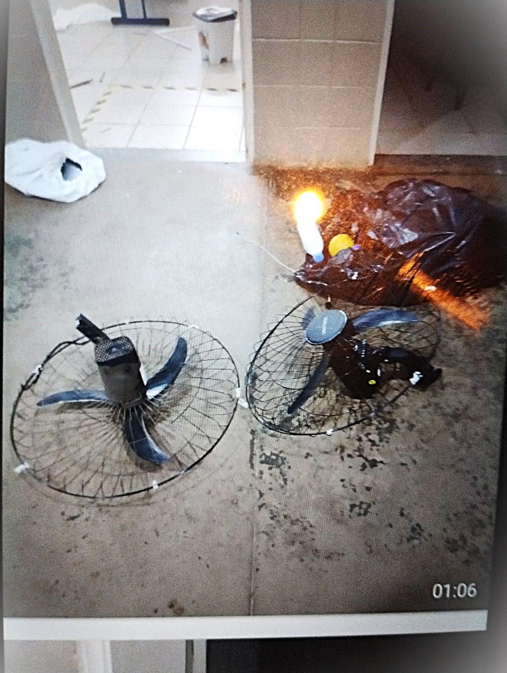 Ao chegarem, os agentes flagraram o suspeito em uma das salas de aula. O homem havia arrombado várias portas e quebrado um banheiro para acessar o interior da escola. Ele estava em posse de diversos itens, incluindo um computador e ventiladores, que havia colocado em um saco para facilitar o transporte.