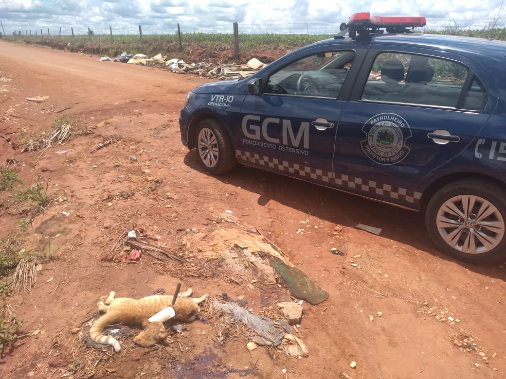 Em patrulhamento pela estrada municipal Joaquina Maria de Arruda na região do Residencial Moacir Guzoni neste domingo (03), os GCMs Gisele e Lucas se depararam com uma “encruzilhada”, onde havia várias oferendas religiosas, no local havia um gato mutilado (decepado).
