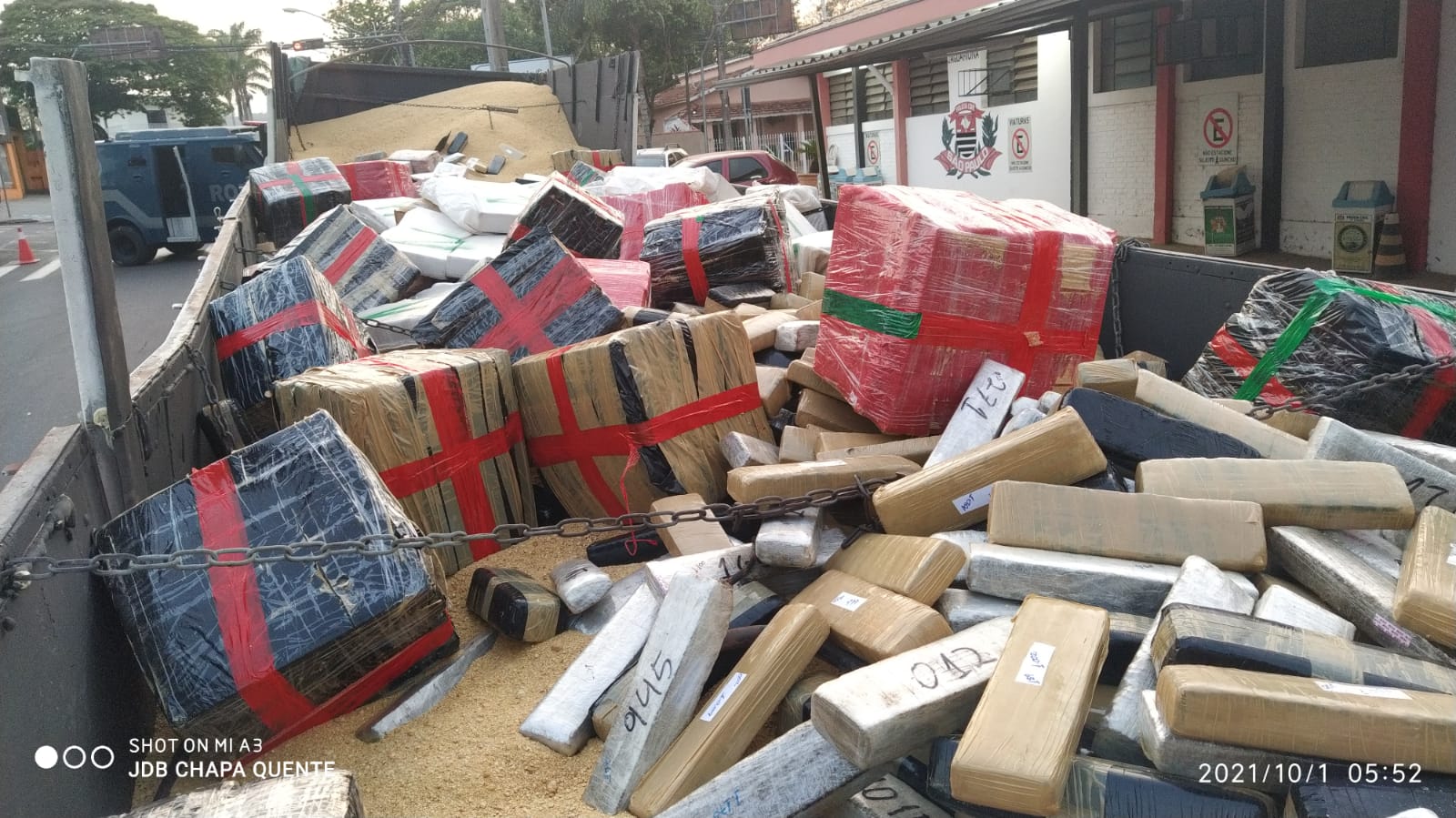 A droga estava escondida em uma carga de farelo de milho