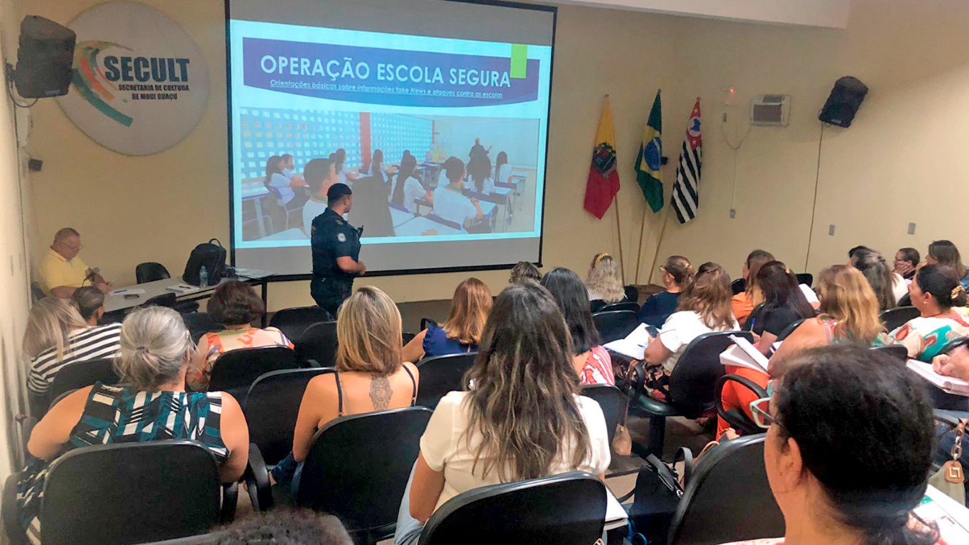 Na segunda-feira, 17 de abril, o comandante da Guarda Civil Municipal (GCM) de Mogi Guaçu, Elzio Romualdo, ministrou uma palestra para os diretores da rede municipal de ensino sobre segurança. O encontro aconteceu na sala de vídeo Célia Maria Stábile do Centro Cultural, no Jardim Camargo, e teve apoio das Secretarias Municipais de Educação e de Segurança.
