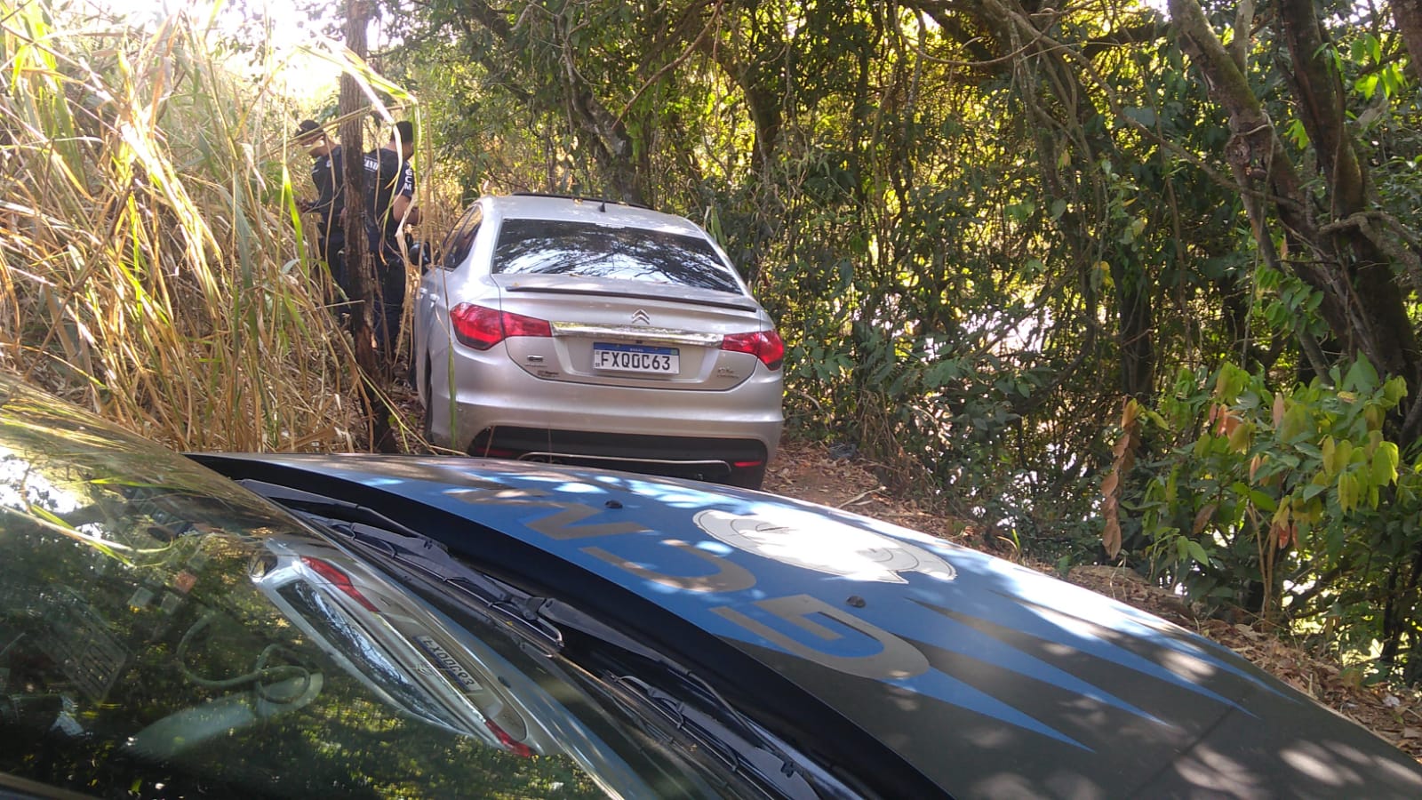 Por meio de denúncias, os GCMs Couto, Thiago e Ralfh encontraram o carro abandonado em uma área de mata, às margens do rio Mogi Guaçu, à rua dos Estudantes, Cachoeira de Cima – no sentido à faculdade municipal Franco Montoro.