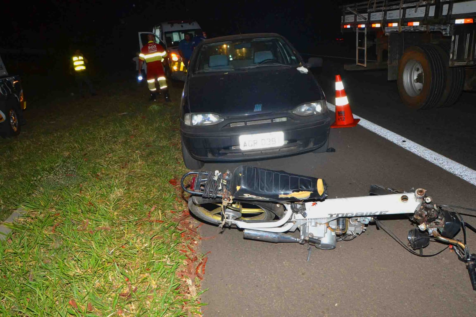 Um grave acidente envolvendo um ciclomotor (moto menor do que 50cc) e um carro, resultou na morte de um pedreiro na noite desta quinta-feira (01), no Km 166/Sul da rodovia SP-340. José Ari dos Santos, 60, colidiu contra a traseira de um Fiat Palio que aguardava no acostamento para acessar a rodovia.