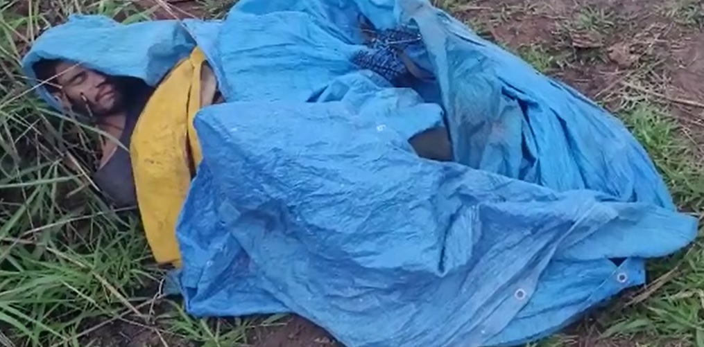 Populares encontraram um homem, ainda não identificado, enrolado em uma lona azul no mesmo lugar onde a grávida morta e estripada foi encontrada, em uma zona de plantação atrás do Jardim Canaã e Jardim Eldorado, lugar conhecido como “Monte”, o fato ocorreu por volta das 17h00 desta quinta (22).