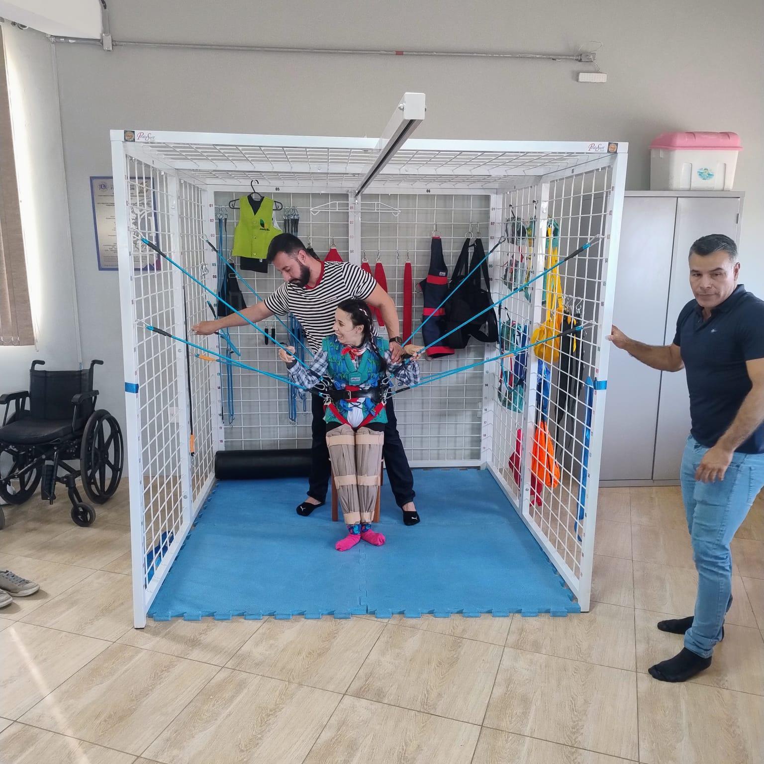 O PediaSuit é uma vestimenta ortopédica terapêutica composta por colete, calção, joelheiras e calçados adaptados, interligados por bandas elásticas ajustáveis. Seu objetivo é promover o alinhamento postural e a modulação do tônus muscular, com impacto direto na função sensorial, vestibular e motora.