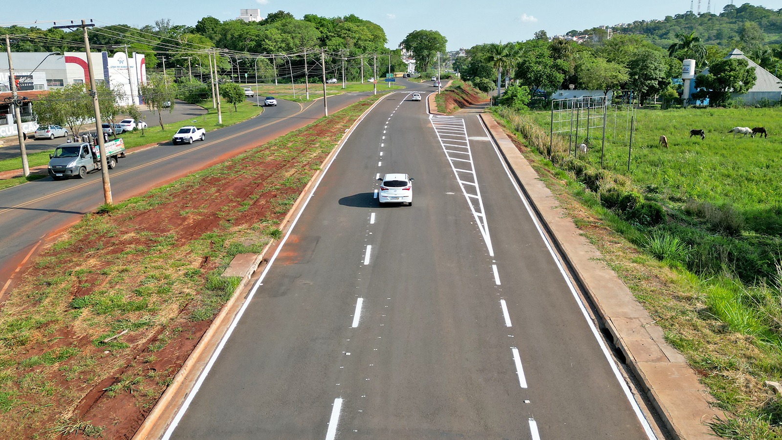 O trecho da via recebeu nova sinalização e o motorista poderá seguir pelo novo trecho do prolongamento da via com segurança.