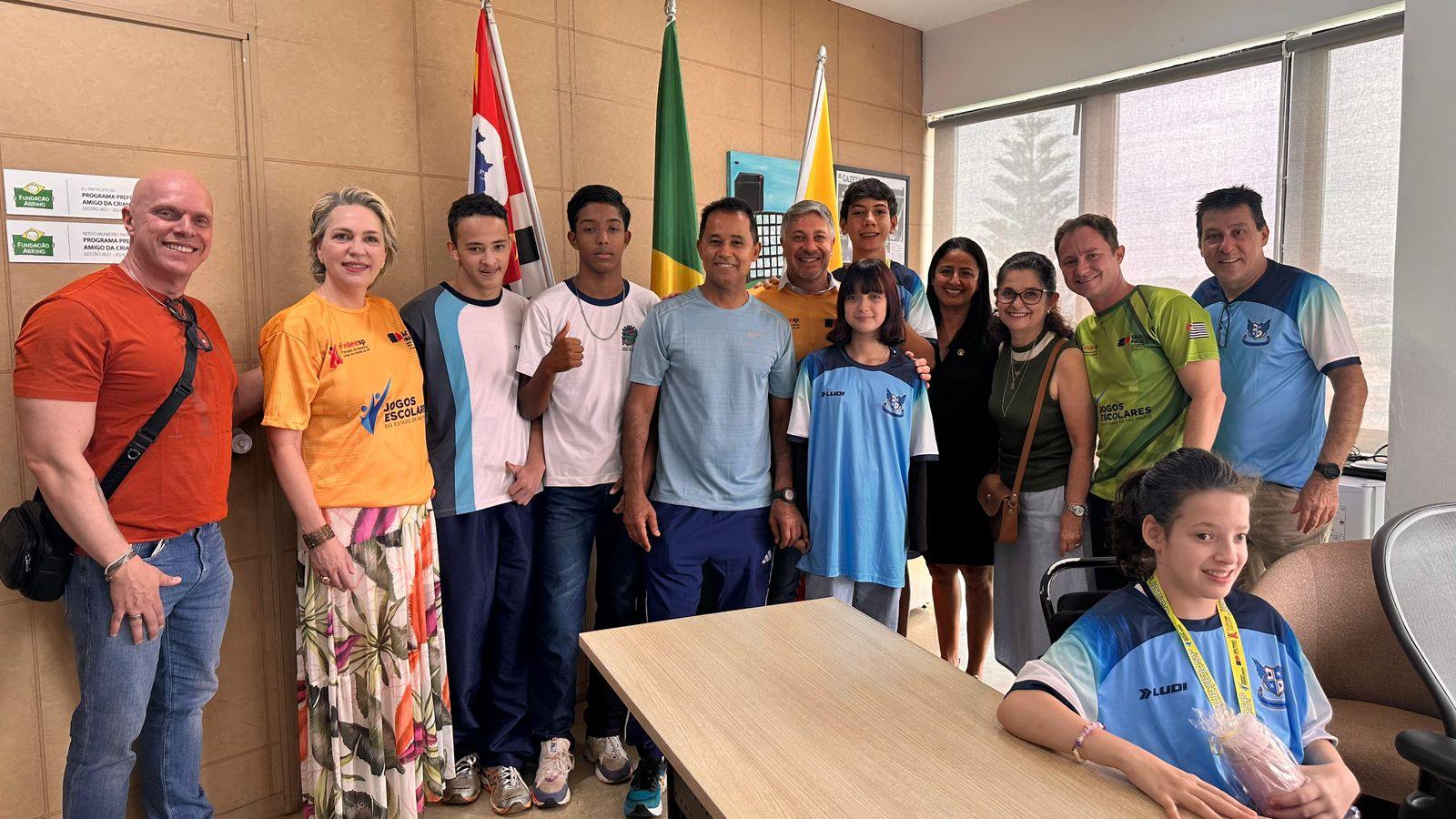 A solenidade, organizada pela Secretaria de Esportes do Estado (SESP), será realizada no dia 9 de dezembro, uma terça-feira, às 10h, e reconhecerá oficialmente o desempenho dos estudantes locais que representaram o município na etapa nacional da competição. Nesta semana, os estudantes foram recebidos pelo prefeito Rodrigo Falsetti, acompanhados pelo secretário da Educação, Paulo Paliari.