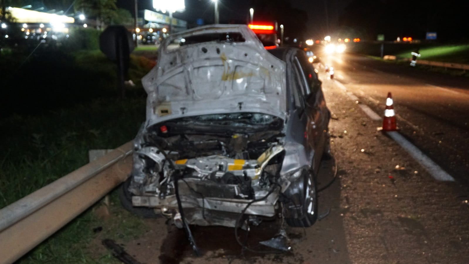 A Meriva, trafegando em alta velocidade e em zigue-zague, ultrapassou a camionete, mas ao tentar passar o Ford Fiesta, fez uma manobra brusca e veio a sair da pista, fora de controle. O carro bateu na defensa, capotou várias vezes e ainda atingiu a caminhonete.
