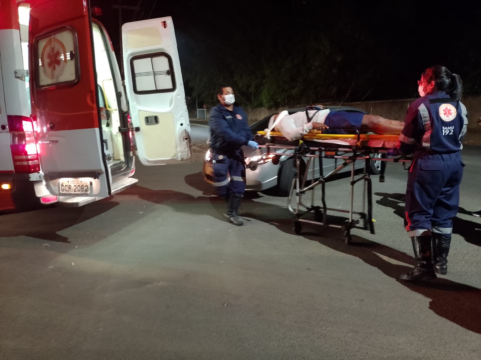 O motociclista ficou bastante ferido e foi socorrido pelo SAMU com suspeitas de fraturas.