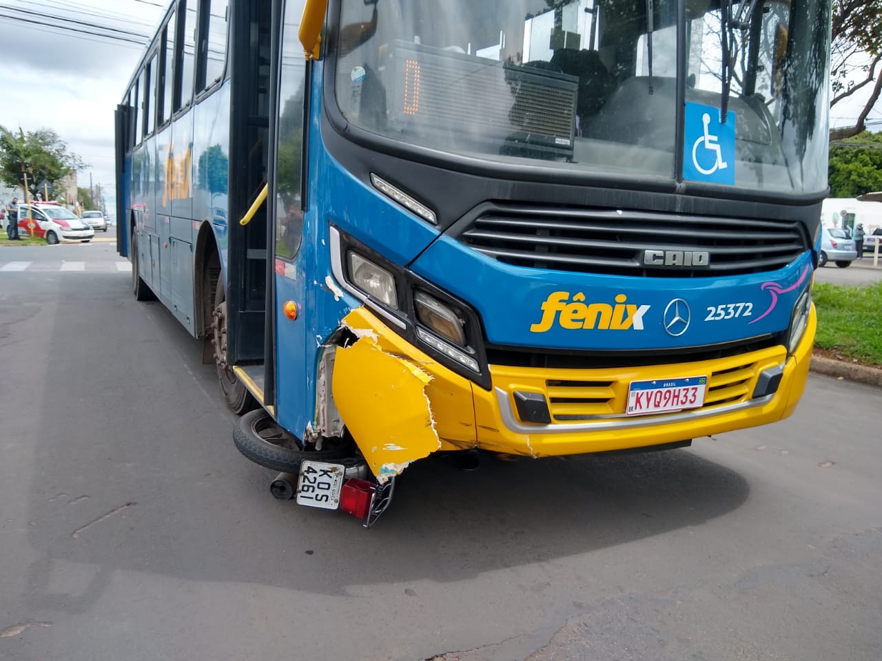 Um acidente envolvendo uma motocicleta e um ônibus de transporte coletivo da empresa Fênix, por pouco não terminou em tragédia no Jardim Novo II.