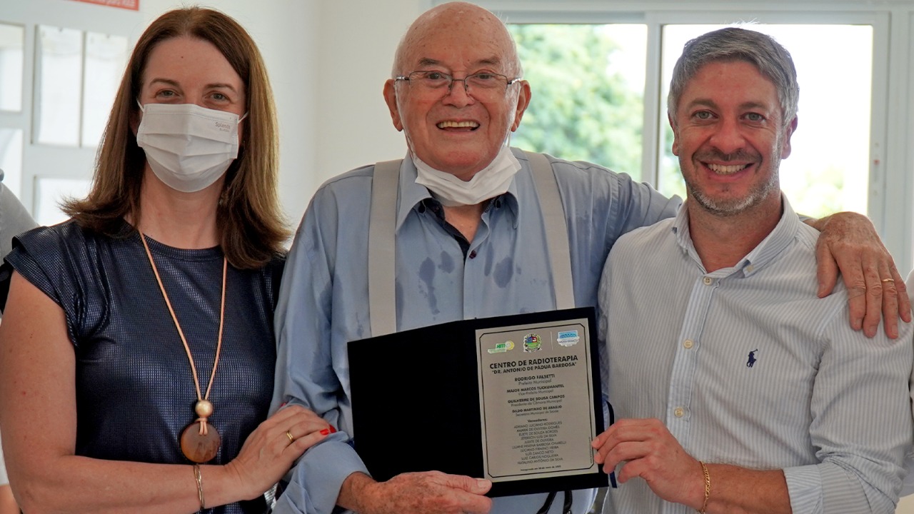 Ainda na manhã desta terça-feira, o prefeito e vereadores visitaram o Centro de Radioterapia Dr. Antonio de Pádua Barbosa. O homenageado esteve no local para conhecer o espaço, pois não pôde estar presente quando a unidade foi inaugurada, em maio desse ano. Dr. Barbosa recebeu uma réplica da placa de inauguração que está afixada na entrada da clínica.