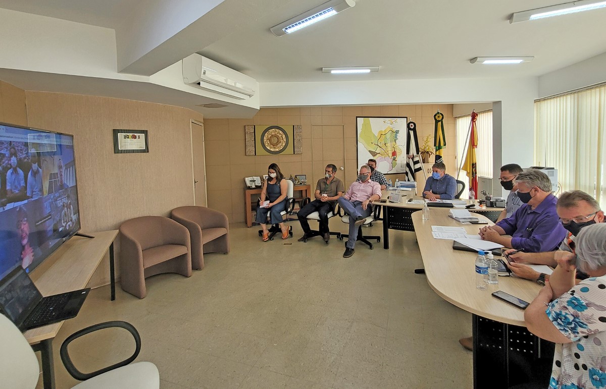 Além do prefeito Rodrigo Falsetti, o vice-prefeito Major Marcos Luiz Tuckumantel, o chefe de Gabinete, Ruben Coimbra Novaes, o presidente da Defesa Civil, Gildésio Cezário, e os secretários Marcelo Sartori (Meio Ambiente) e Leila Maria Ramos (Assistência Social) participaram da reunião.