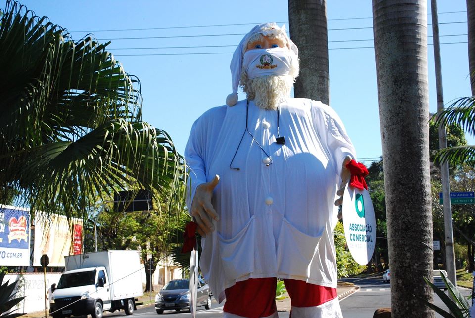 Nota original da Prefeitura: Um Papai Noel construído com fibra de vidro foi instalado na rotatória da Avenida dos Trabalhadores, no acesso à rua Paula Bueno, para prestar homenagem aos profissionais da área da saúde e para conscientizar a população sobre os riscos da pandemia do coronavírus.