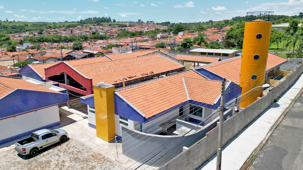 A caixa d’água da creche é de material metálico e terá capacidade de reservar 40 mil litros de água, sendo tanto para o consumo diário da unidade quanto para acumular uma reserva de água para a utilização do Corpo de Bombeiros, em caso de alguma emergência. No entorno da área de implantação do equipamento já foi colocado o piso intertravado.