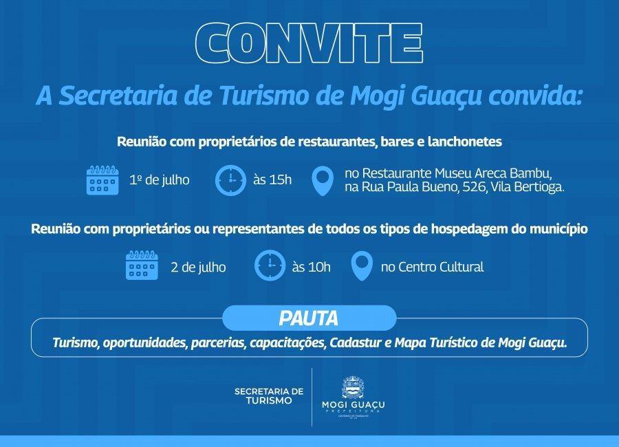Duas reuniões importantes serão promovidas nesta semana pela Secretaria Municipal de Turismo, a fim de discutir pautas relevantes para os setores no município. A primeira será nesta terça-feira, dia 1º de julho, e é voltada para os proprietários de restaurantes, bares e lanchonetes. O encontro está agendado para às 15h e acontecerá no Restaurante Museu Areca Bambu, na Rua Paula Bueno, 526, na Vila Bertioga.