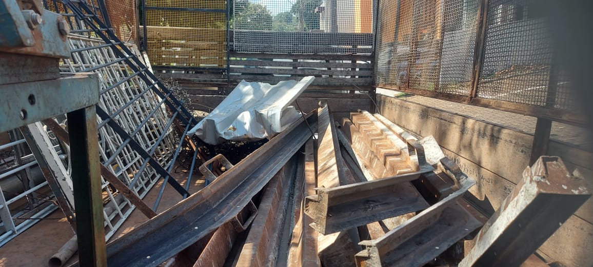 Diversos produtos de ferro, aço e inox como: telhas galvanizadas e peças de alambrados, que estavam dentro do estabelecimento.