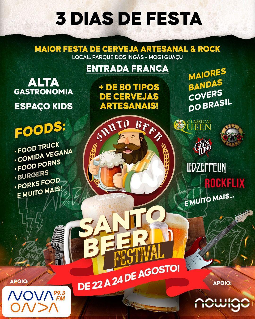 O Santo Beer Festival acontecerá nos dias 22, 23 e 24 de agosto, com entrada livre, tornando-se uma oportunidade imperdível para reunir amigos e familiares em um ambiente de pura energia e celebração. Venha viver momentos inesquecíveis onde o rock é sagrado e a cerveja também!