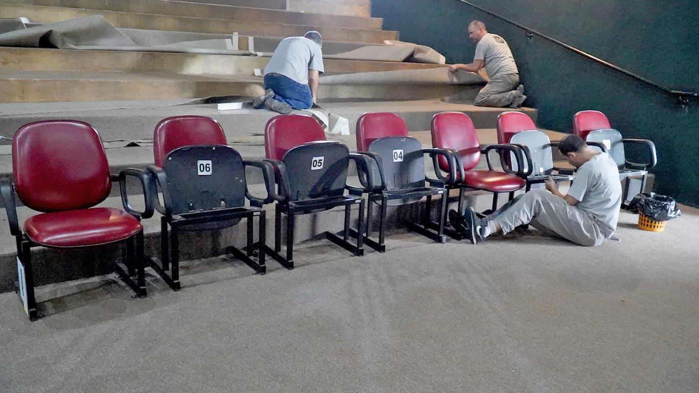 O secretário-adjunto de Cultura, Domênico Honório, contou que o carpete do Teatro Tupec está sendo trocado pela primeira vez em cerca de 20 anos. “Nesse período, apenas intervenções pontuais internas foram realizadas no local”, disse.
