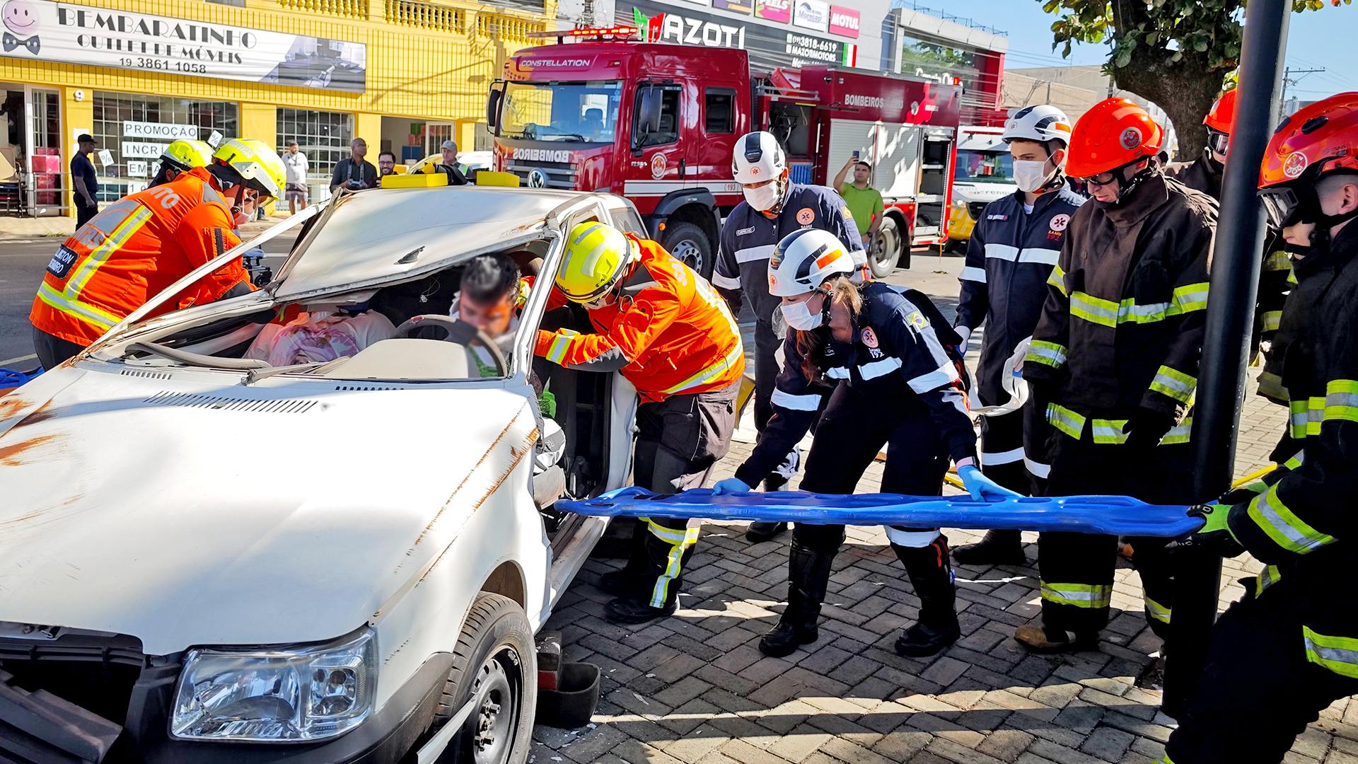 Dezenas de pessoas acompanharam a ação, que simulou, pela primeira vez, uma ocorrência real de acidente com vítima no município, com atendimento médico realizado pelas Corporações e equipes de Segurança. Também estiveram presentes 20 estudantes do 9º ano da Escola Municipal de Ensino Fundamental (EMEF) João Bueno Júnior, localizada no Jardim Centenário.
